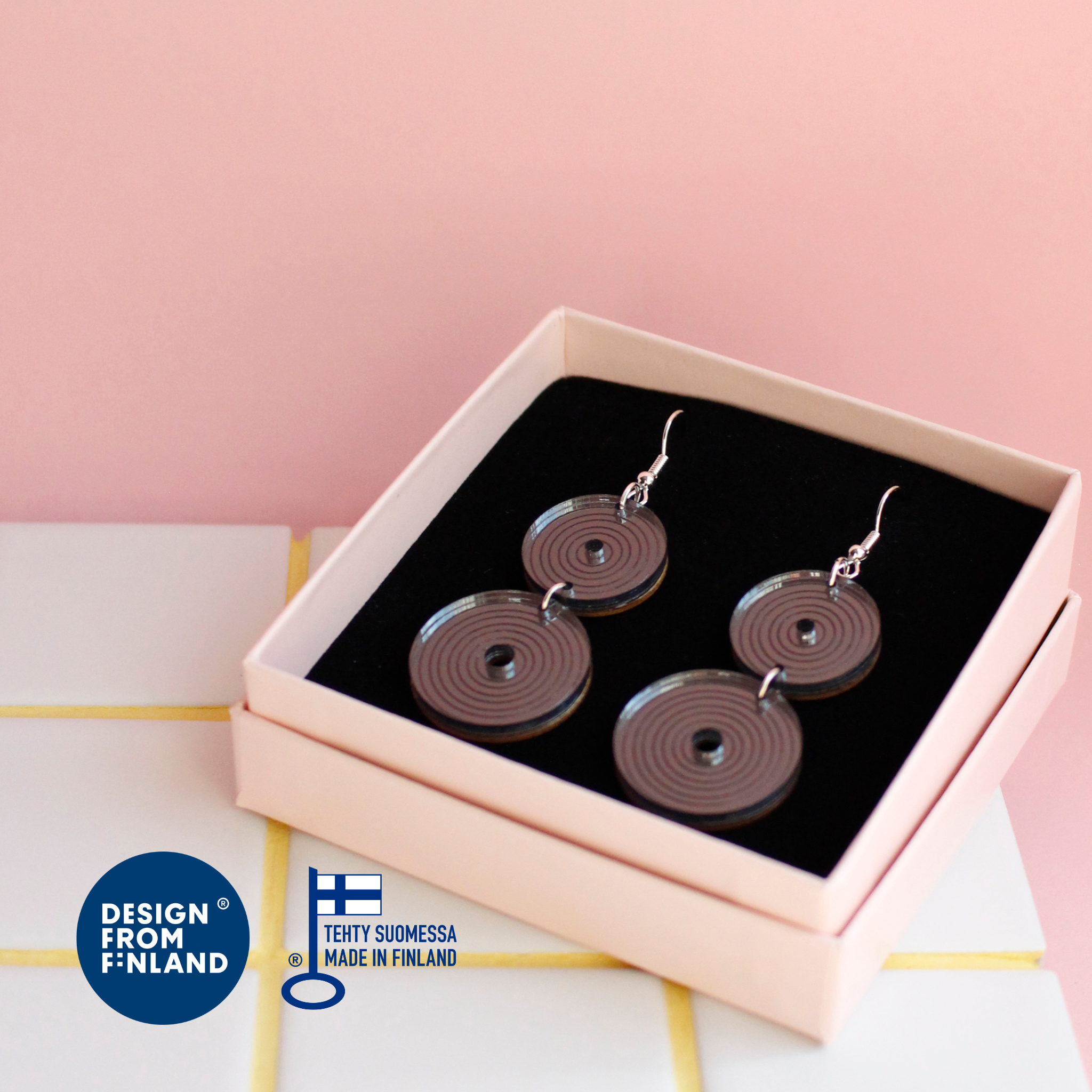 Käytämme korvakoruissamme vastuullisesti tuotettua, 100% kotimaista FSC-sertifioitua koivuvaneria.