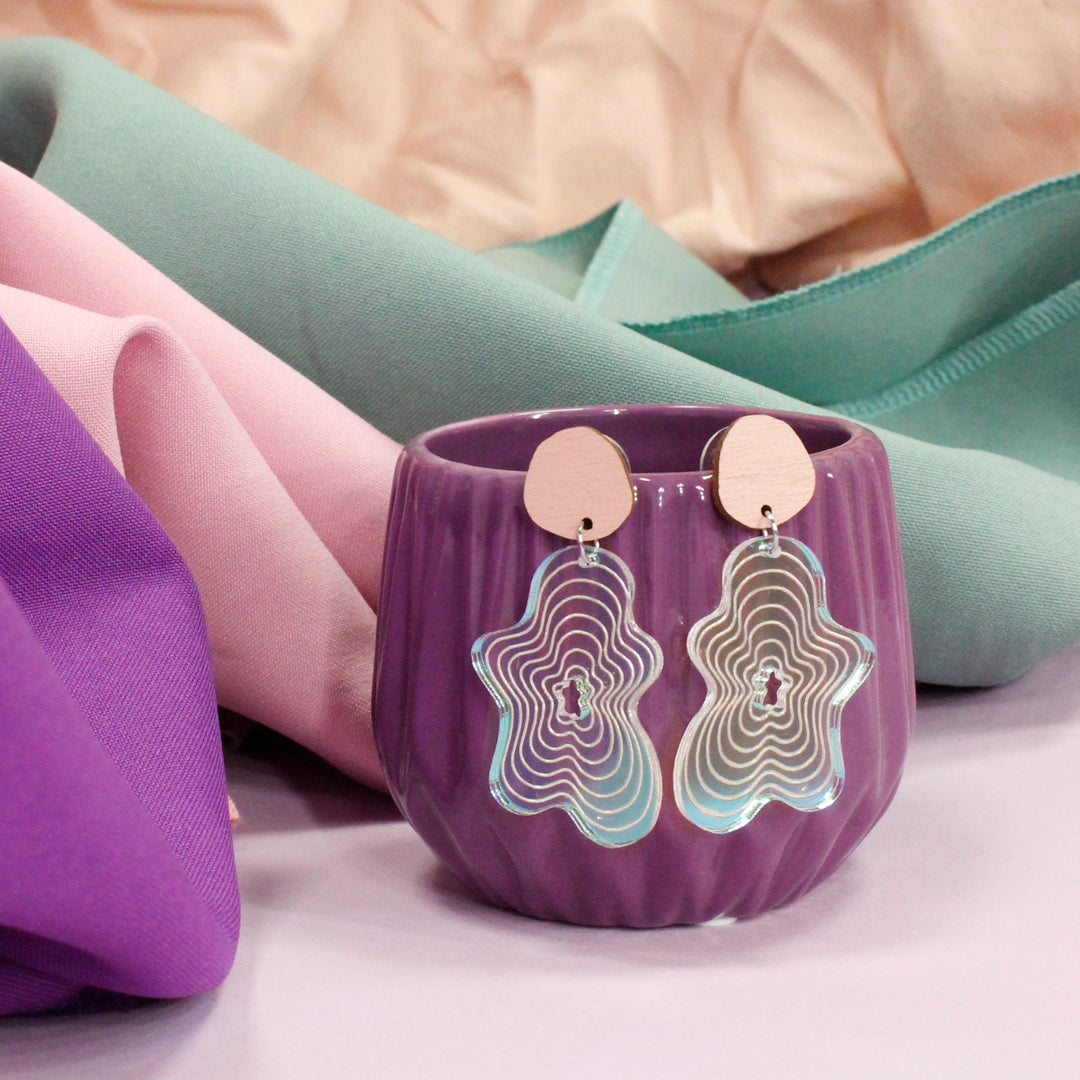 Säihkyvä peiliakryyli tuo juhlavuutta korvakoruihin. Trendikäs korvakoru materiaali on lisäksi äärettömän kevyt käyttää!